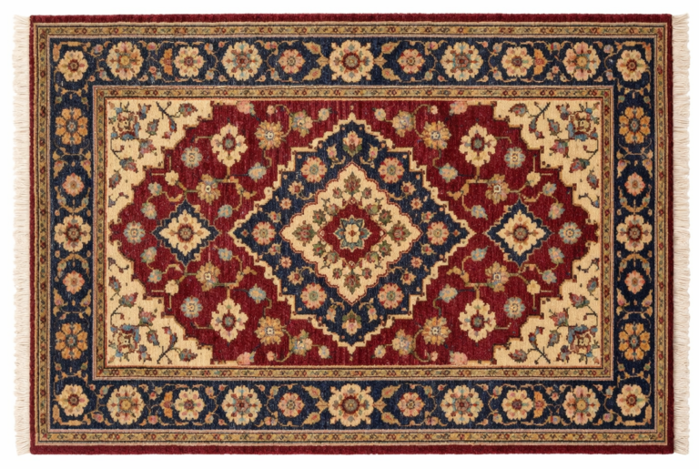 Design: Classic hand-knotted floral medallion design with traditional border detailing