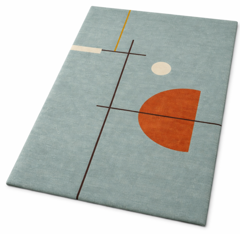 Colour: A refined blend of muted blue, teal, beige, sand, and soft gold tones with subtle earthy accents.